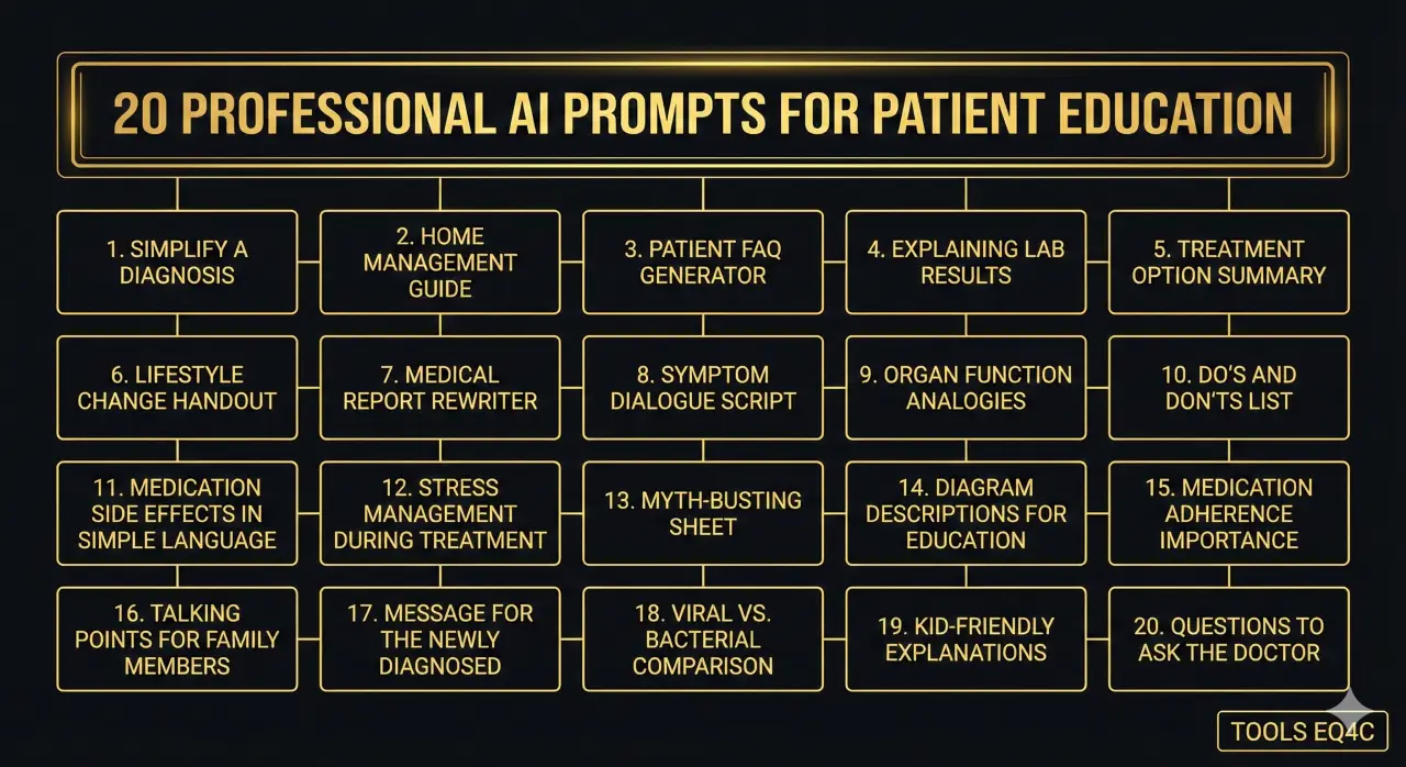 Patient education is more than just giving out facts. it is about making sure people feel safe. It involves explaining tests and correcting common myths. These prompts cover every part of the patient journey.